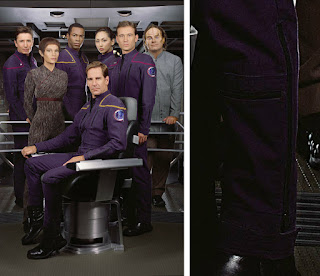 For instance, in the publicity photo below, Archer's leg zipper appeared to be about 1" taller than his calf pocket, Travis' and Hoshi's appeared to extend about 2" above their calf pockets, and Trip's appeared to extend about 3" past his calf pocket!